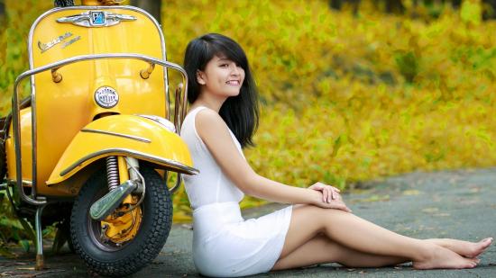 Wallpaper Asian girl in yellow scooter