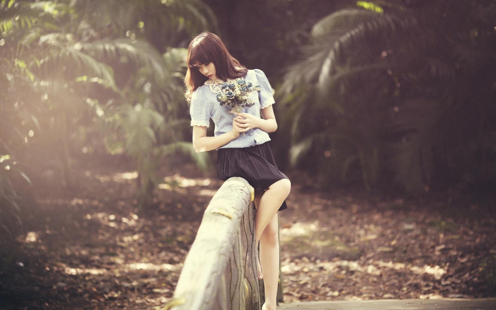 Wallpaper Asian with a bouquet on the rail bridge