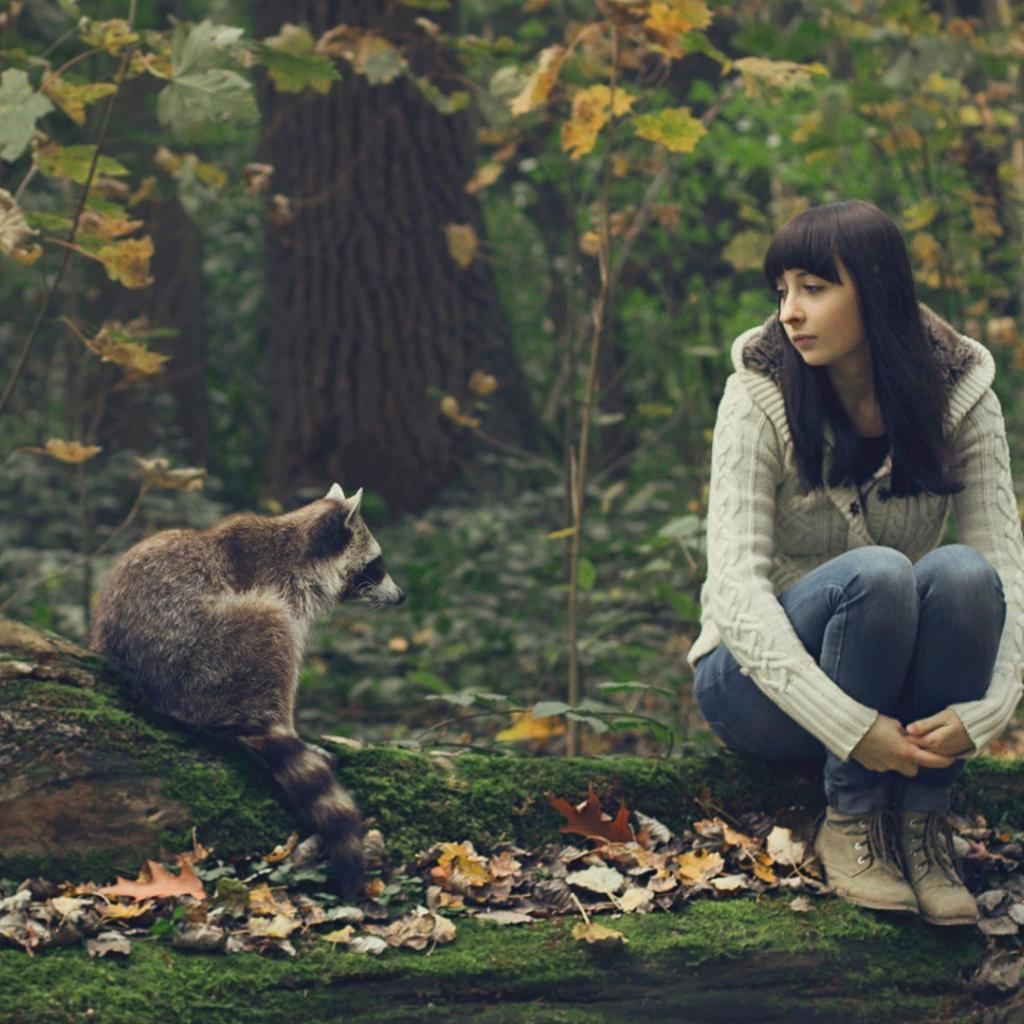 Wallpaper Girl communicates with possum