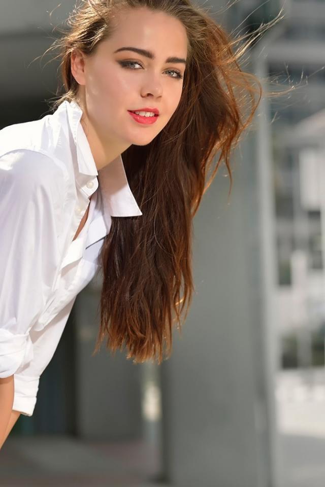 Wallpaper A girl stands at the fan