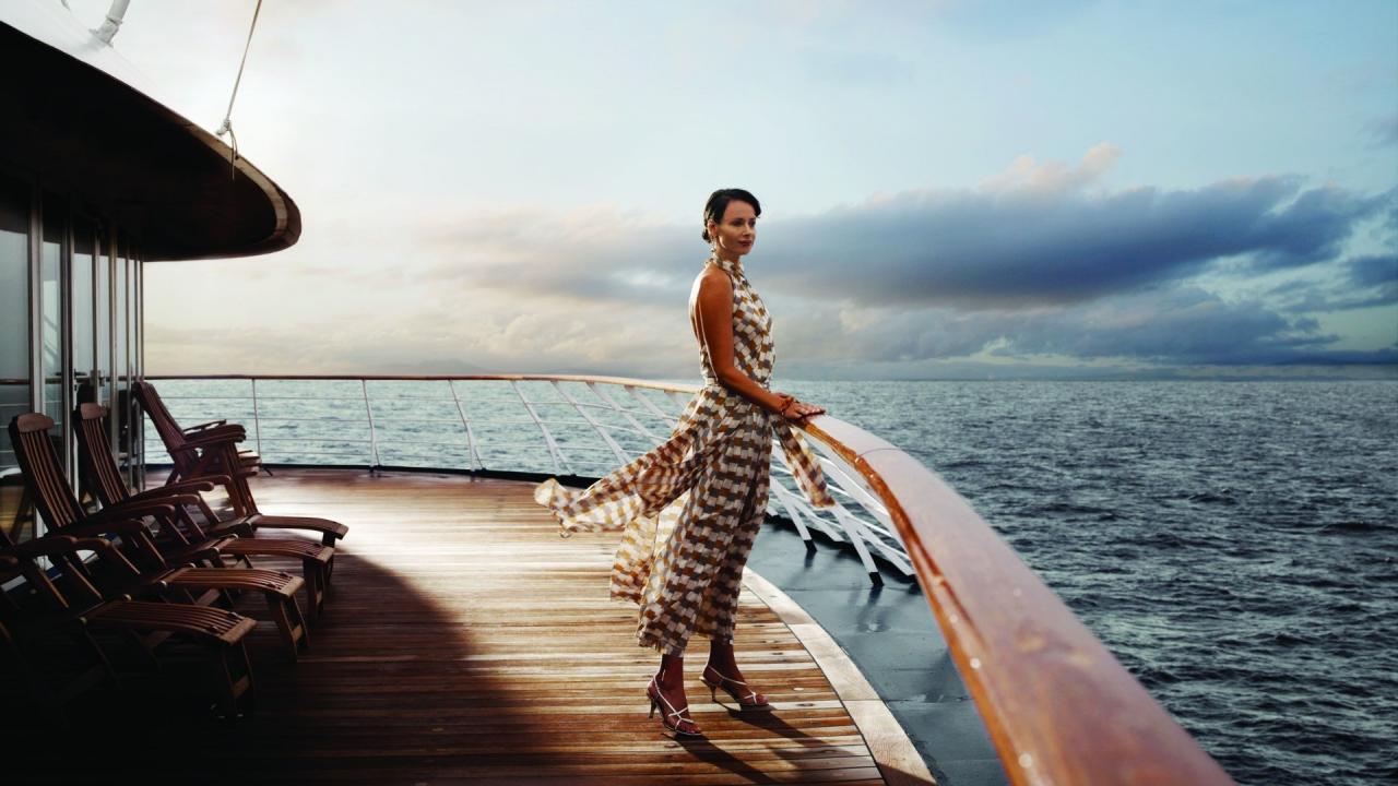 Wallpaper The girl looks at the sea from the deck of the yacht