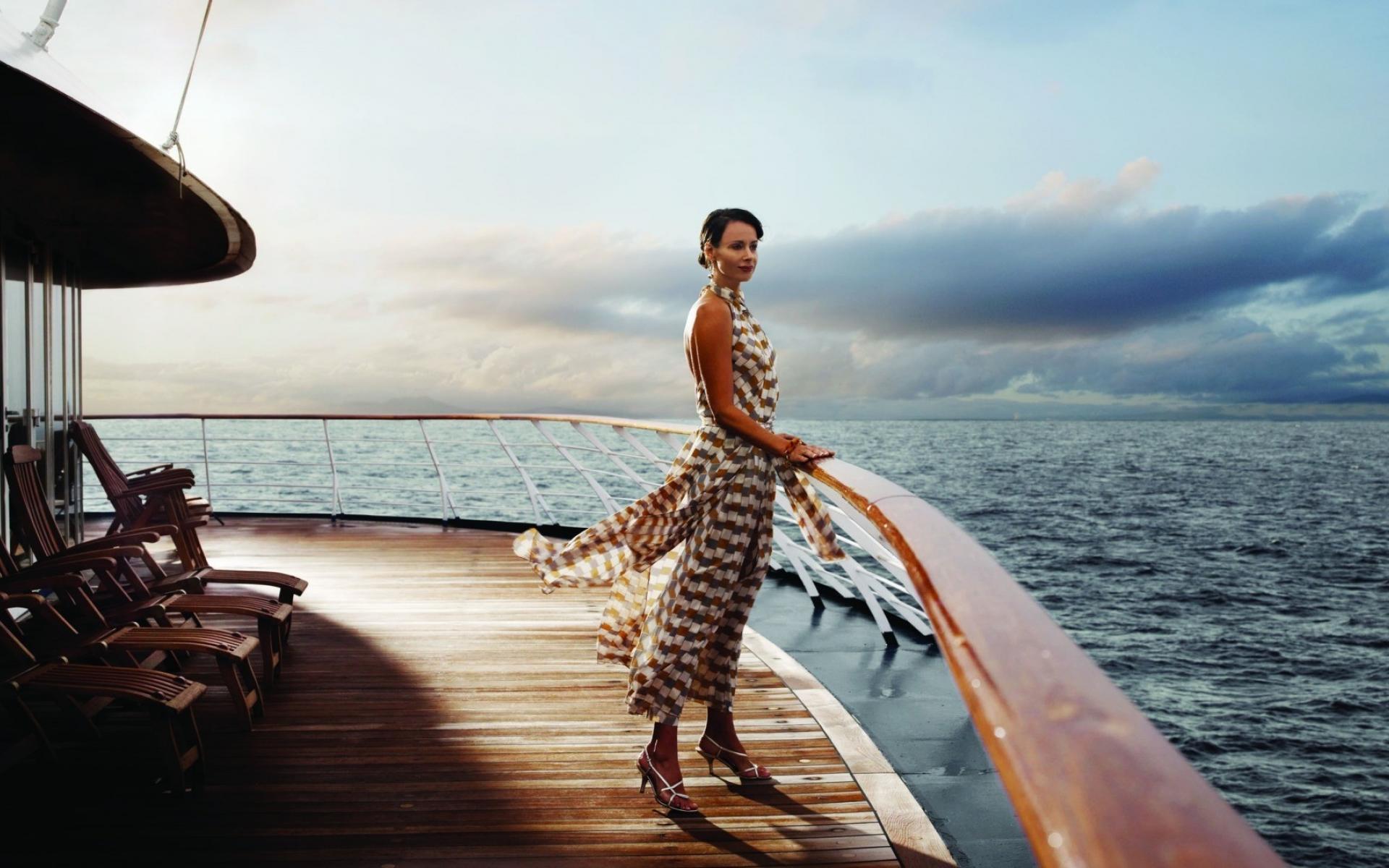 Wallpaper The girl looks at the sea from the deck of the yacht
