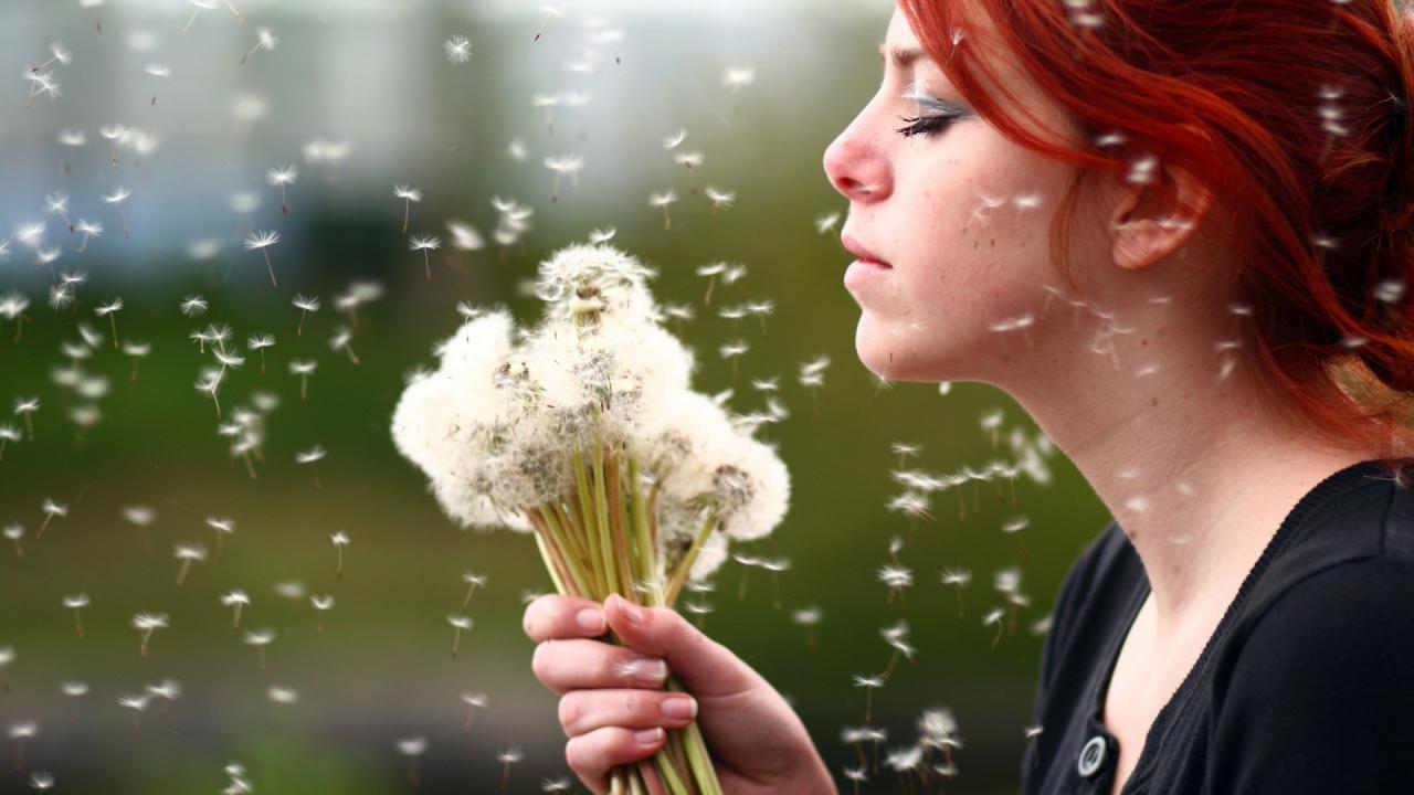Wallpaper Girl holding a bouquet of dandelions
