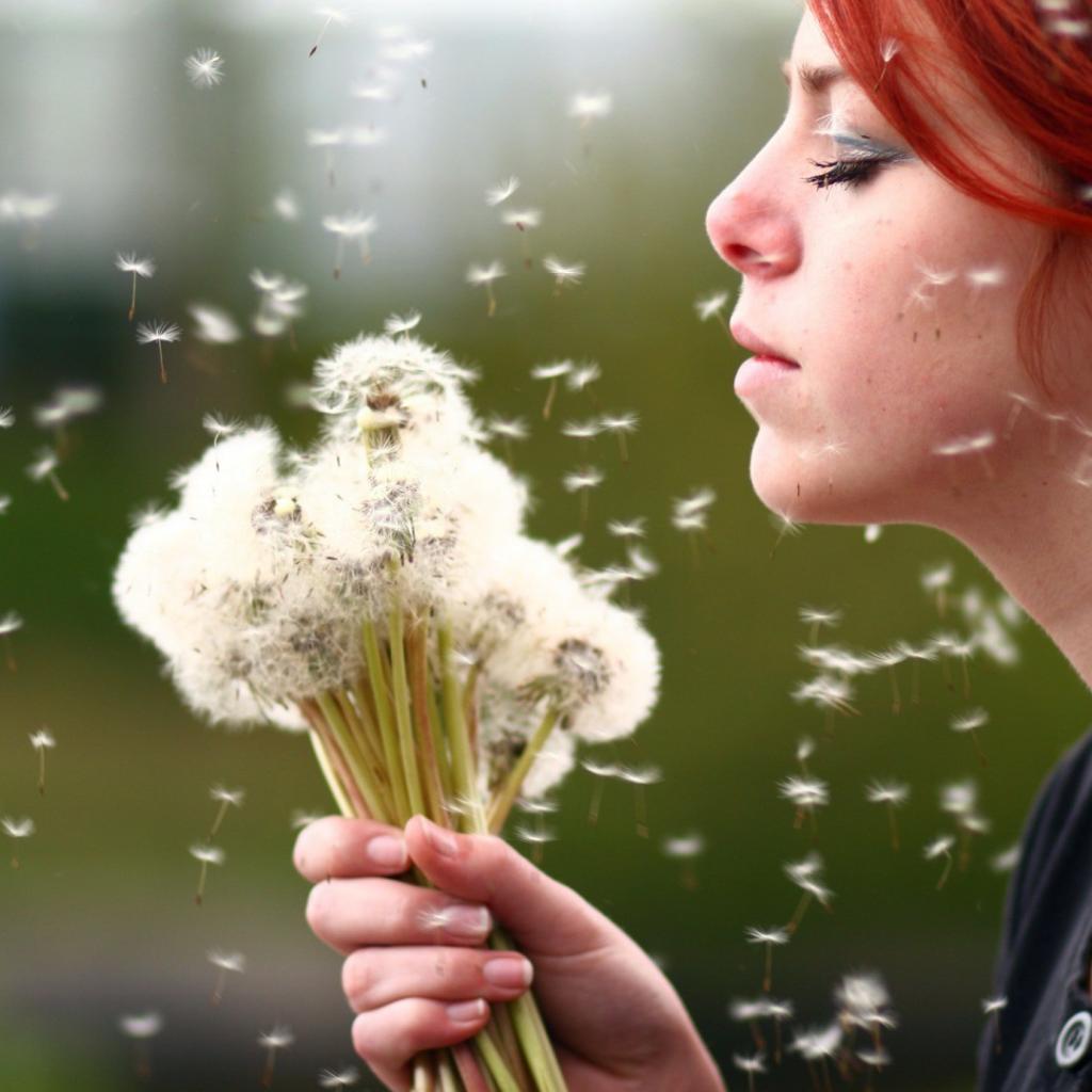 Wallpaper Girl holding a bouquet of dandelions