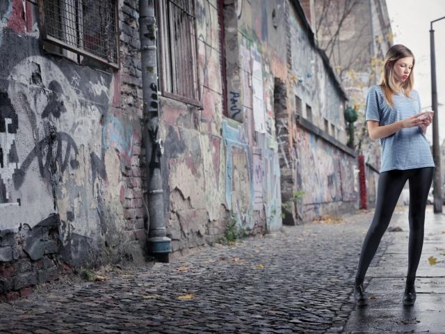 Wallpaper Young girl standing on the street in the slums