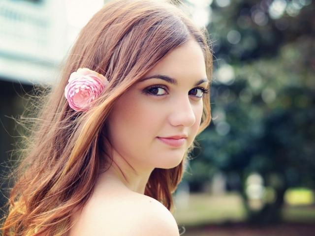 Wallpaper Girl model with a pink flower in her hair