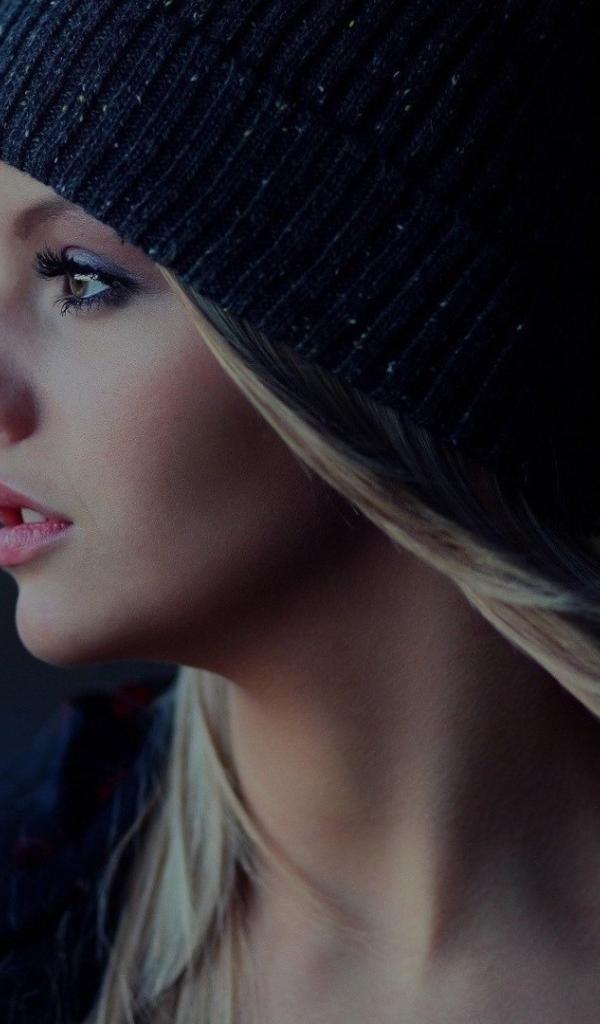 Wallpaper Blonde in a black knitted cap
