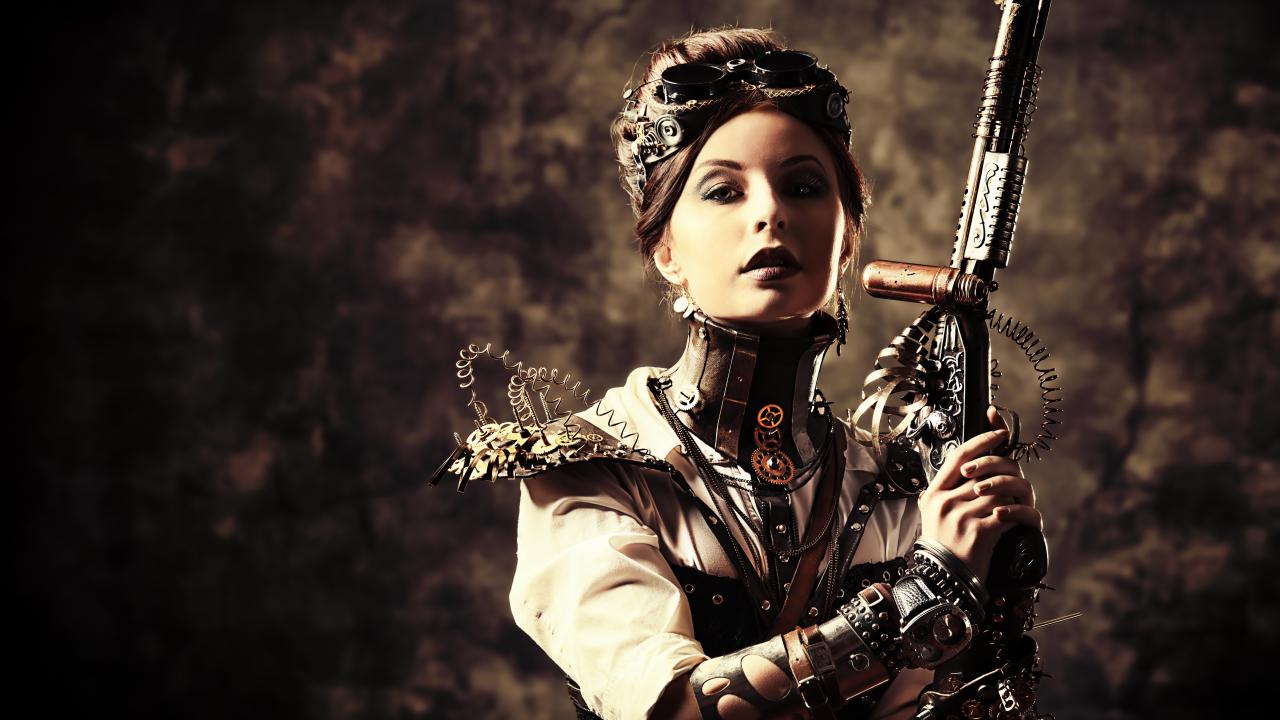 Wallpaper Girl with a weapon, steampunk
