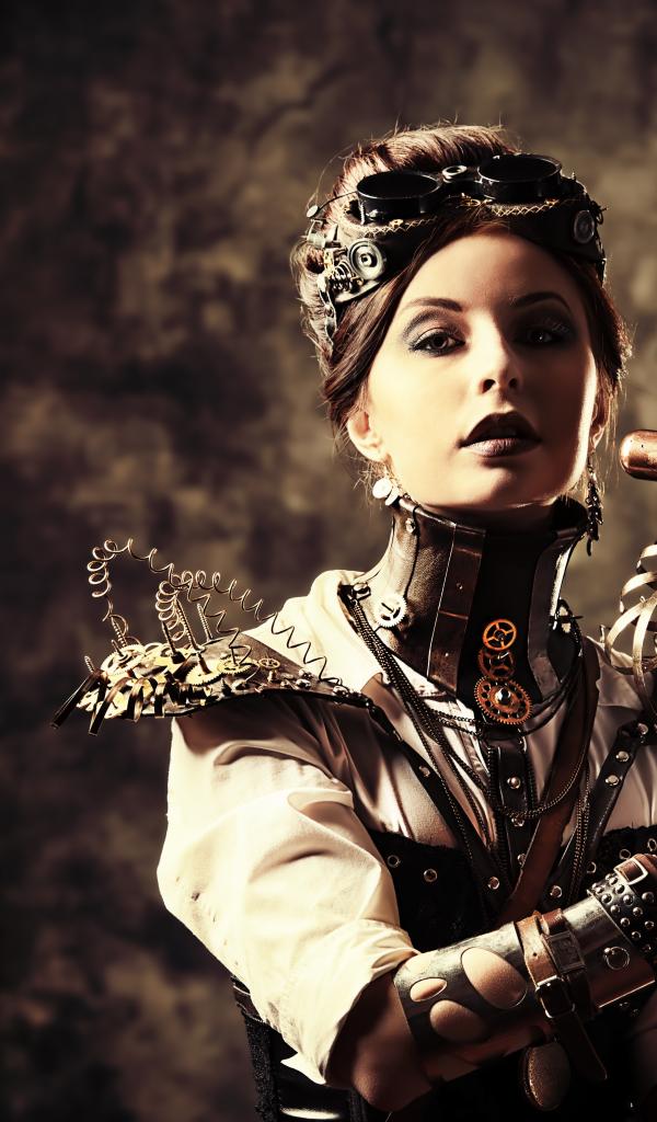 Wallpaper The girl in a hat and glasses in the style of steampunk
