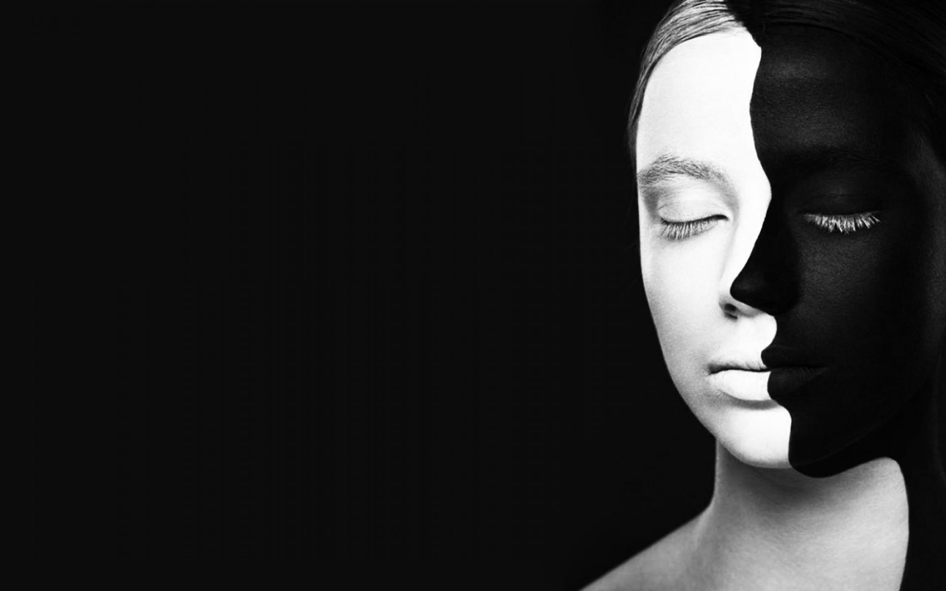 Wallpaper Black and white paint on the face of the girl