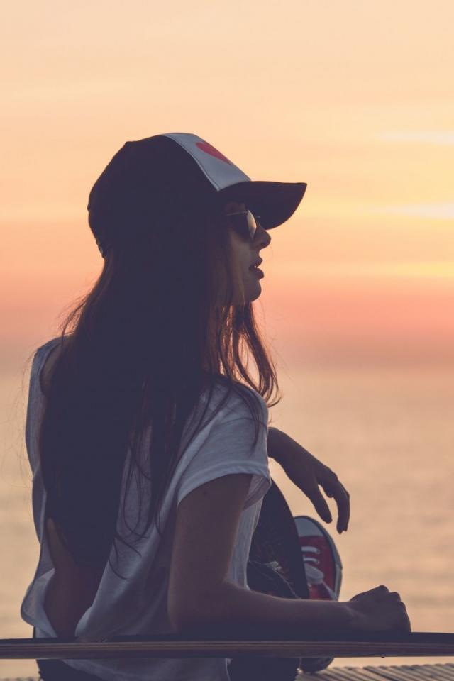 Wallpaper Girl watching the sunset on the beach