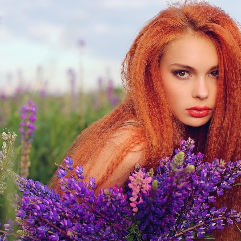 Wallpaper Long-haired red-haired girl in a field of lavender