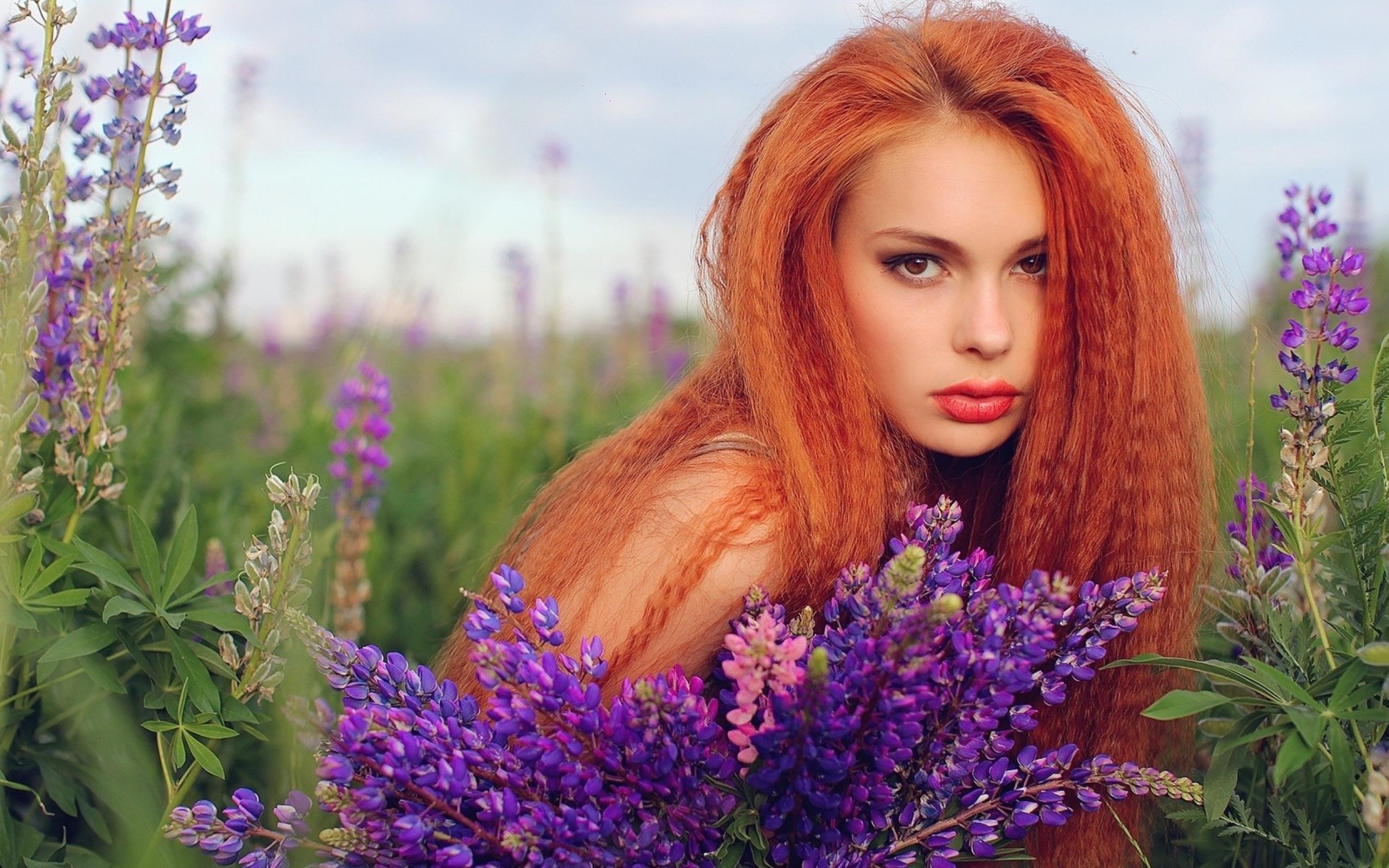 Wallpaper Long-haired red-haired girl in a field of lavender