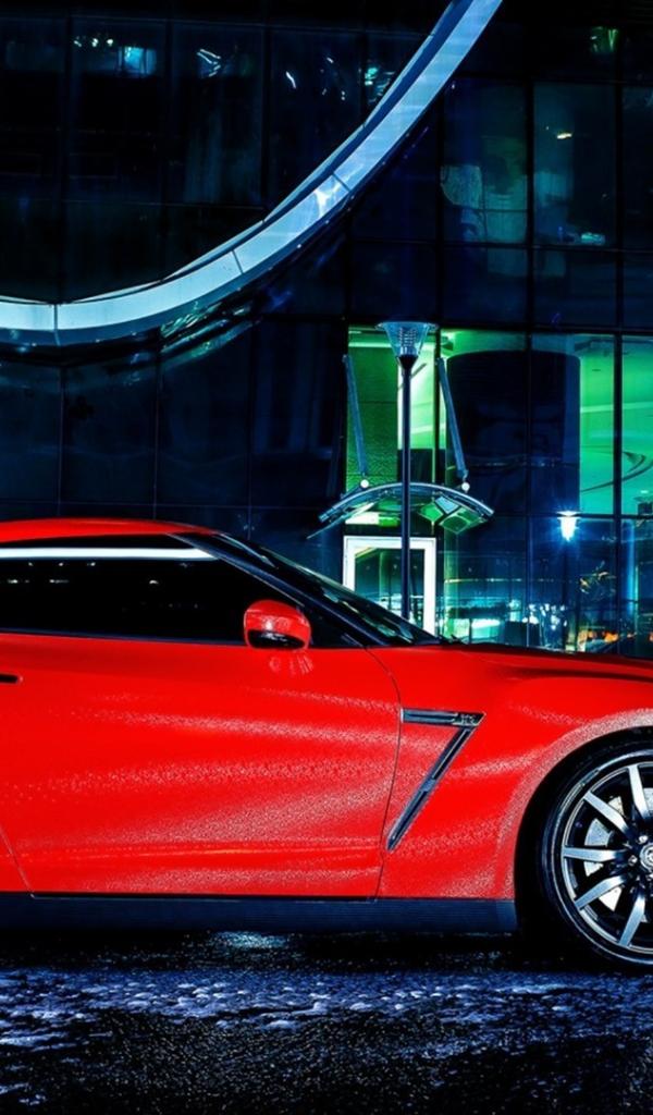 Wallpaper Girl in a red jacket in the car Nissan GT-R