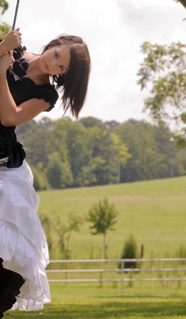 Wallpaper Girl in black dress on a swing