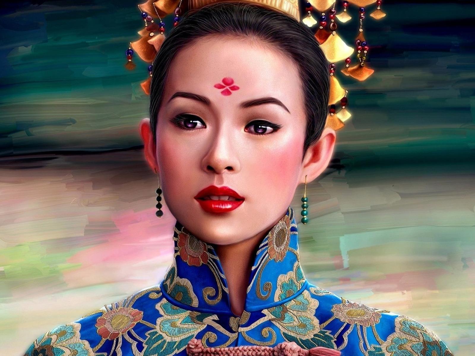 Wallpaper Asian girl in national dress