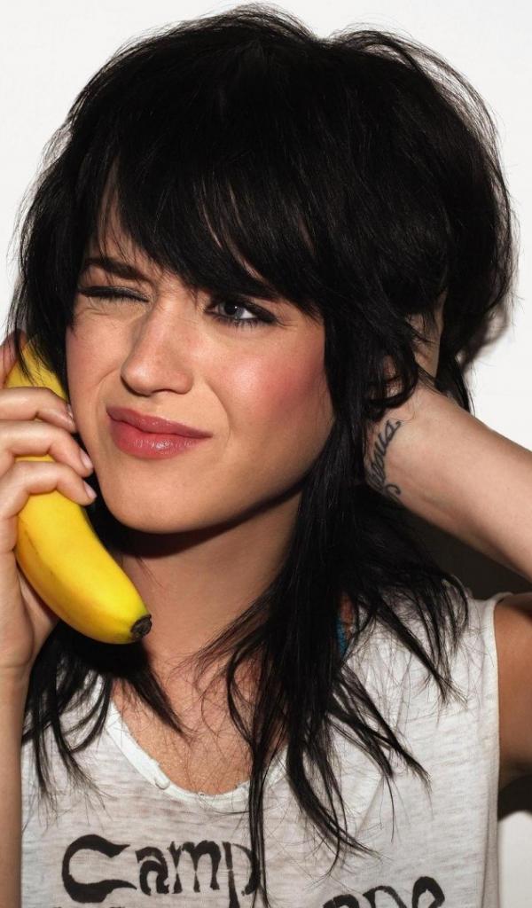 Wallpaper Girl tries to call the banana