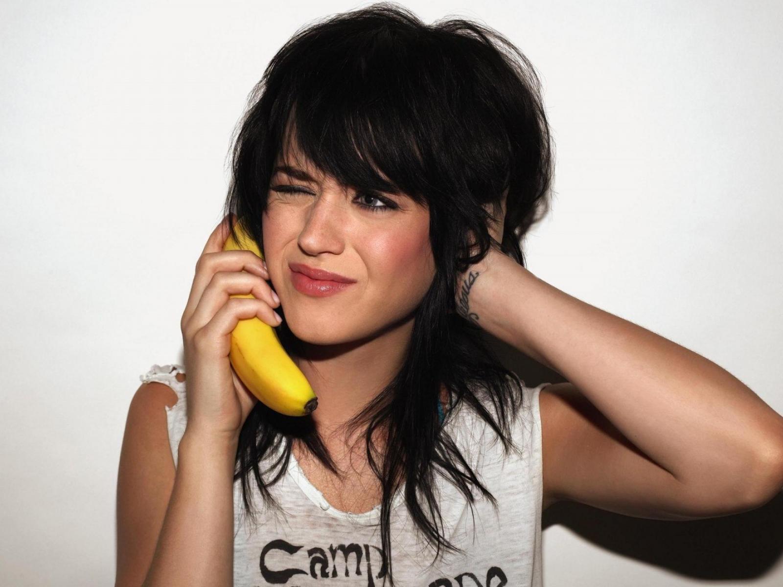 Wallpaper Girl tries to call the banana