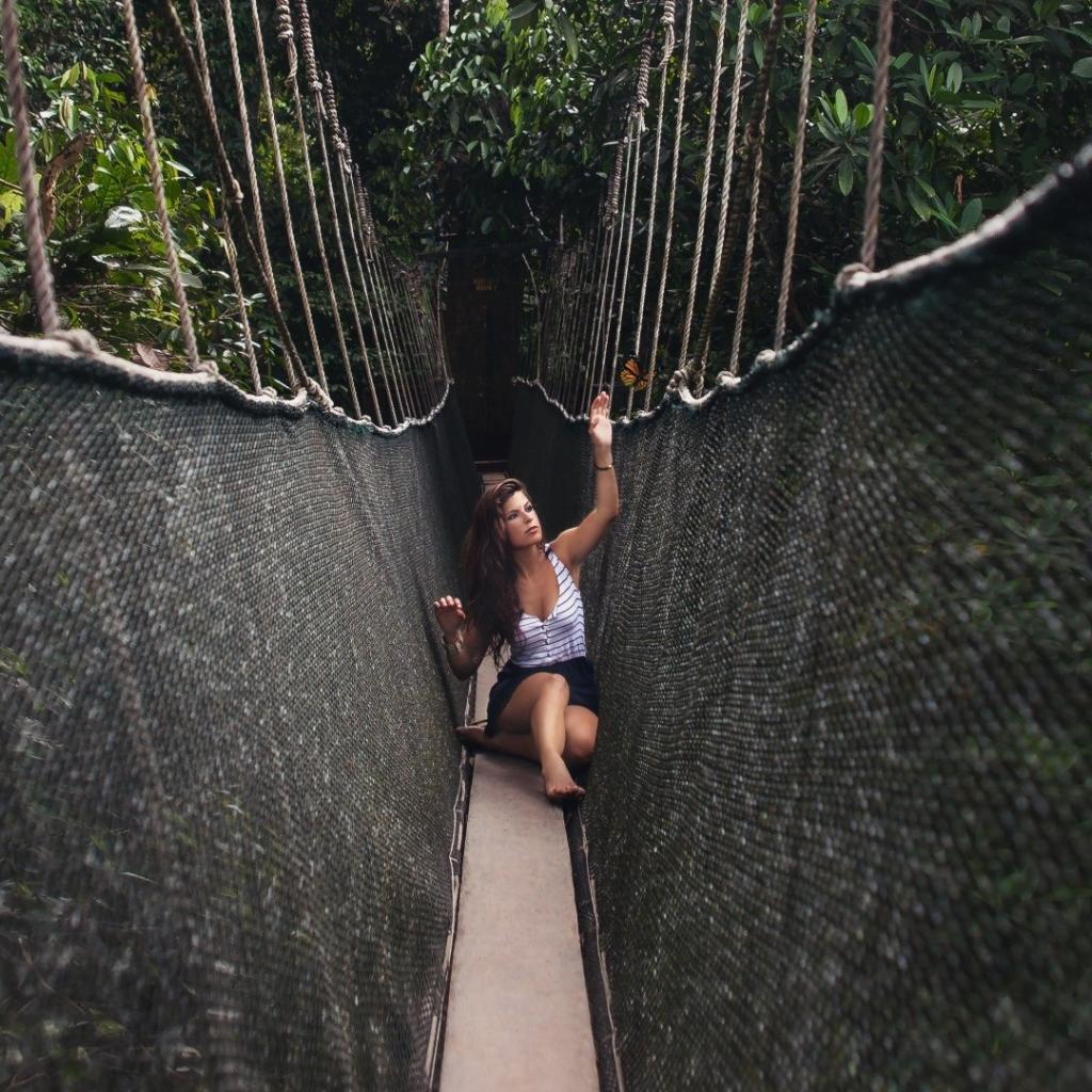 Wallpaper Girl sitting on a suspension bridge