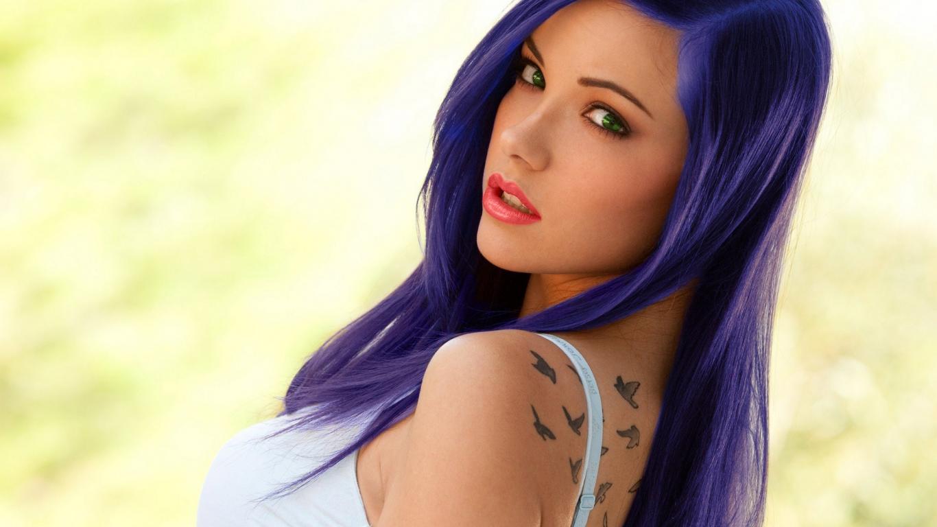 Wallpaper Beautiful girl with blue hair