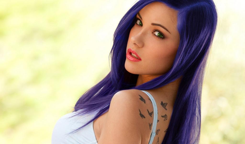 Wallpaper Beautiful girl with blue hair