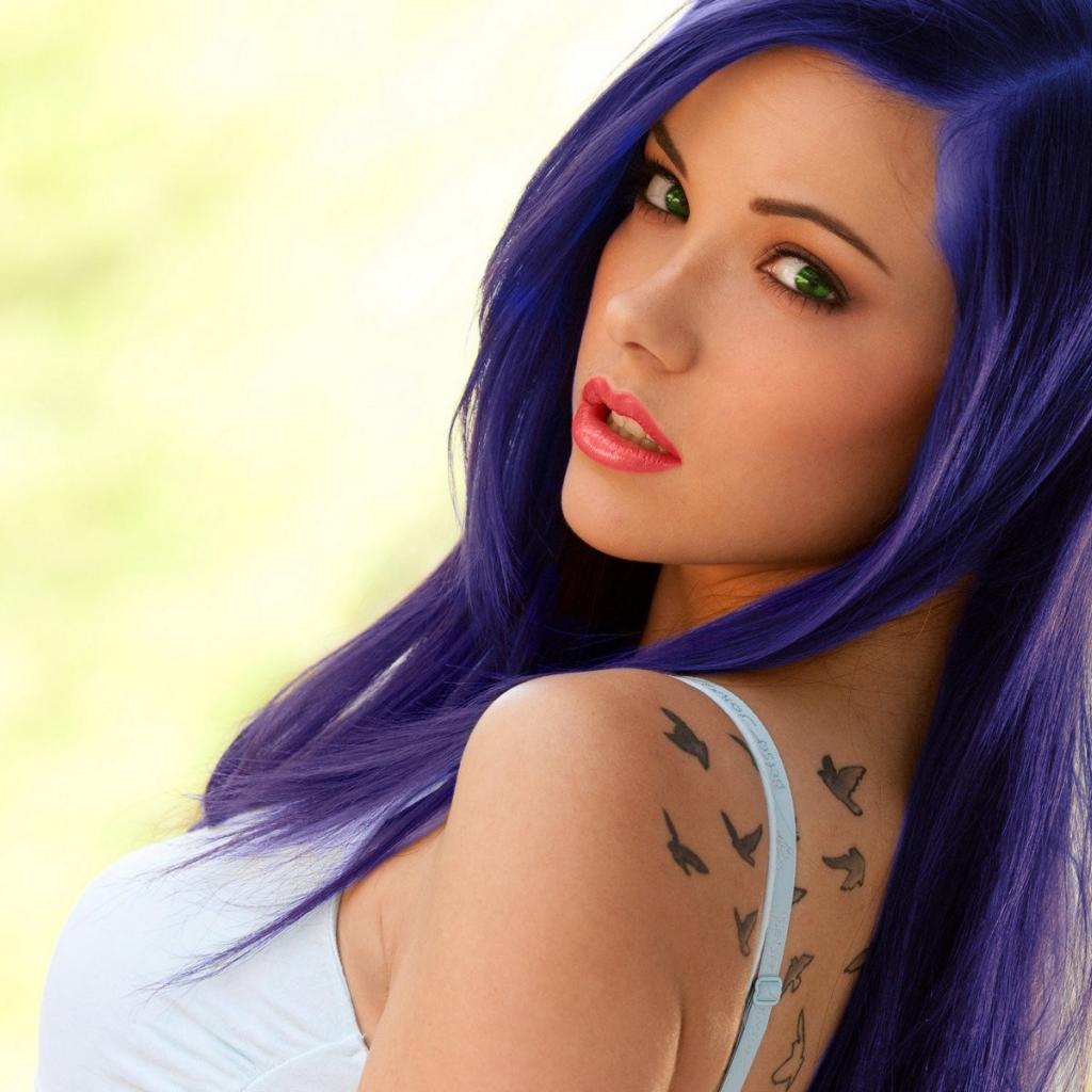 Wallpaper Beautiful girl with blue hair