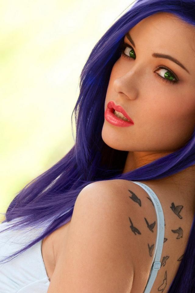 Wallpaper Beautiful girl with blue hair