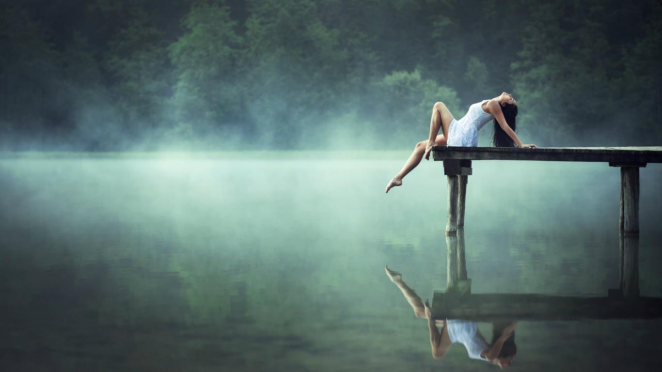 Wallpaper Girl on the pier in the early morning