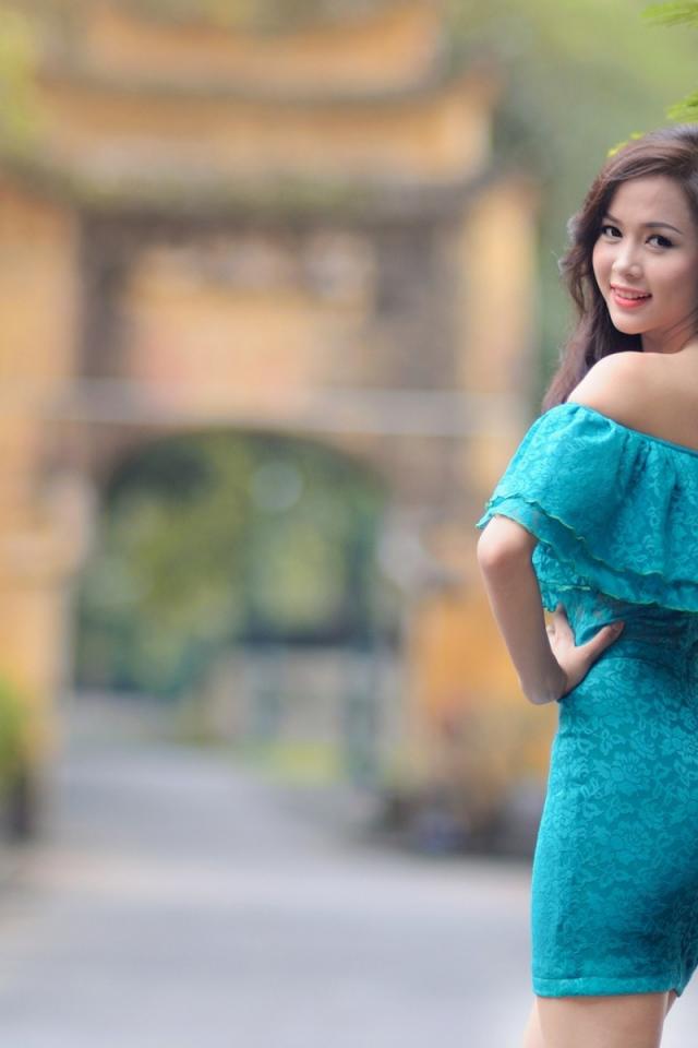 Wallpaper Japanese girl in a blue dress