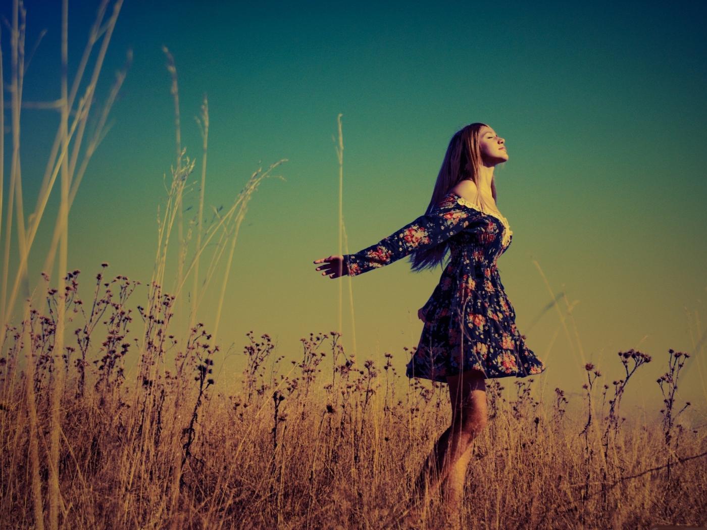 Wallpaper Happy girl in the field
