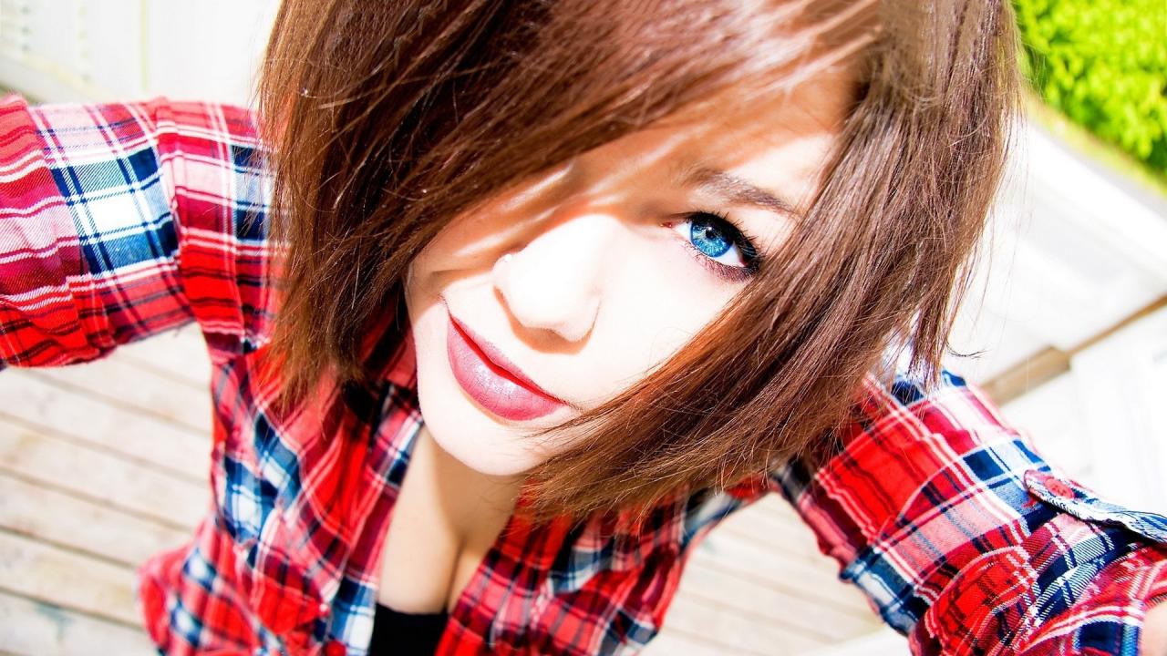 Wallpaper Girl in plaid shirt