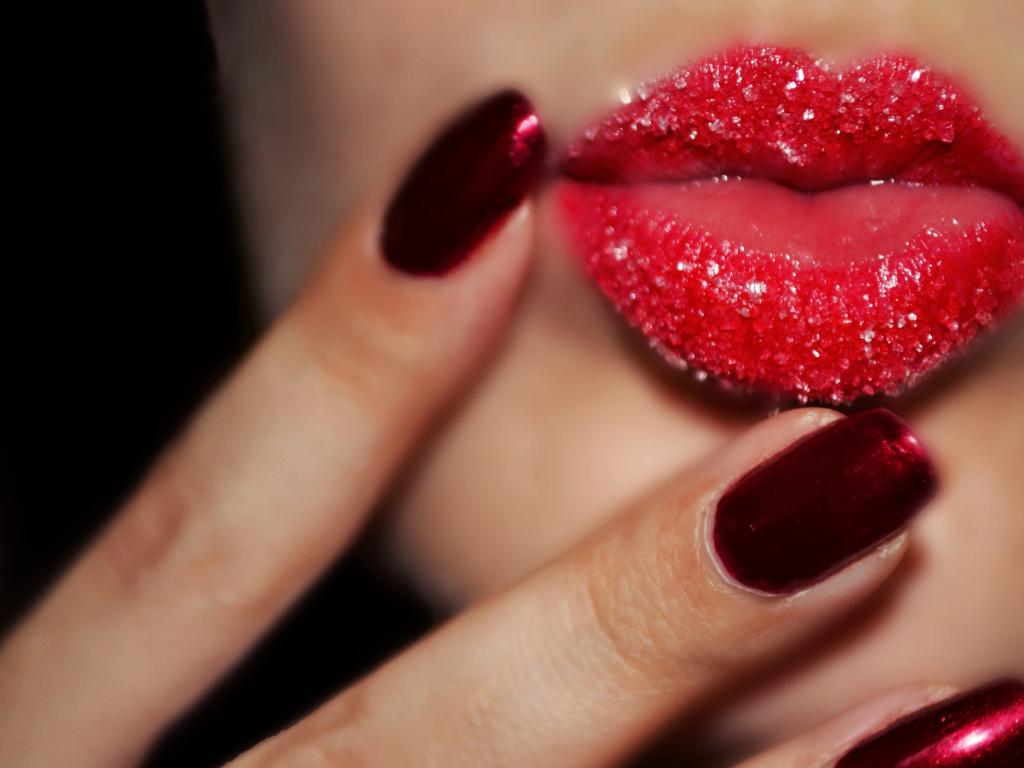 Wallpaper Beautiful girl`s lips in sugar