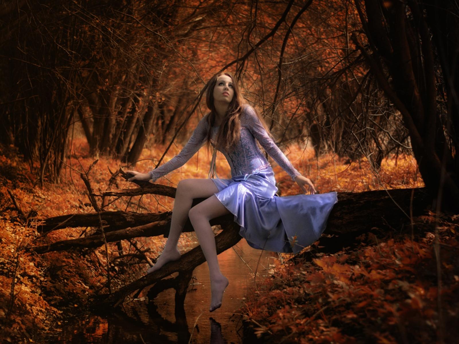 Wallpaper Girl in autumn forest
