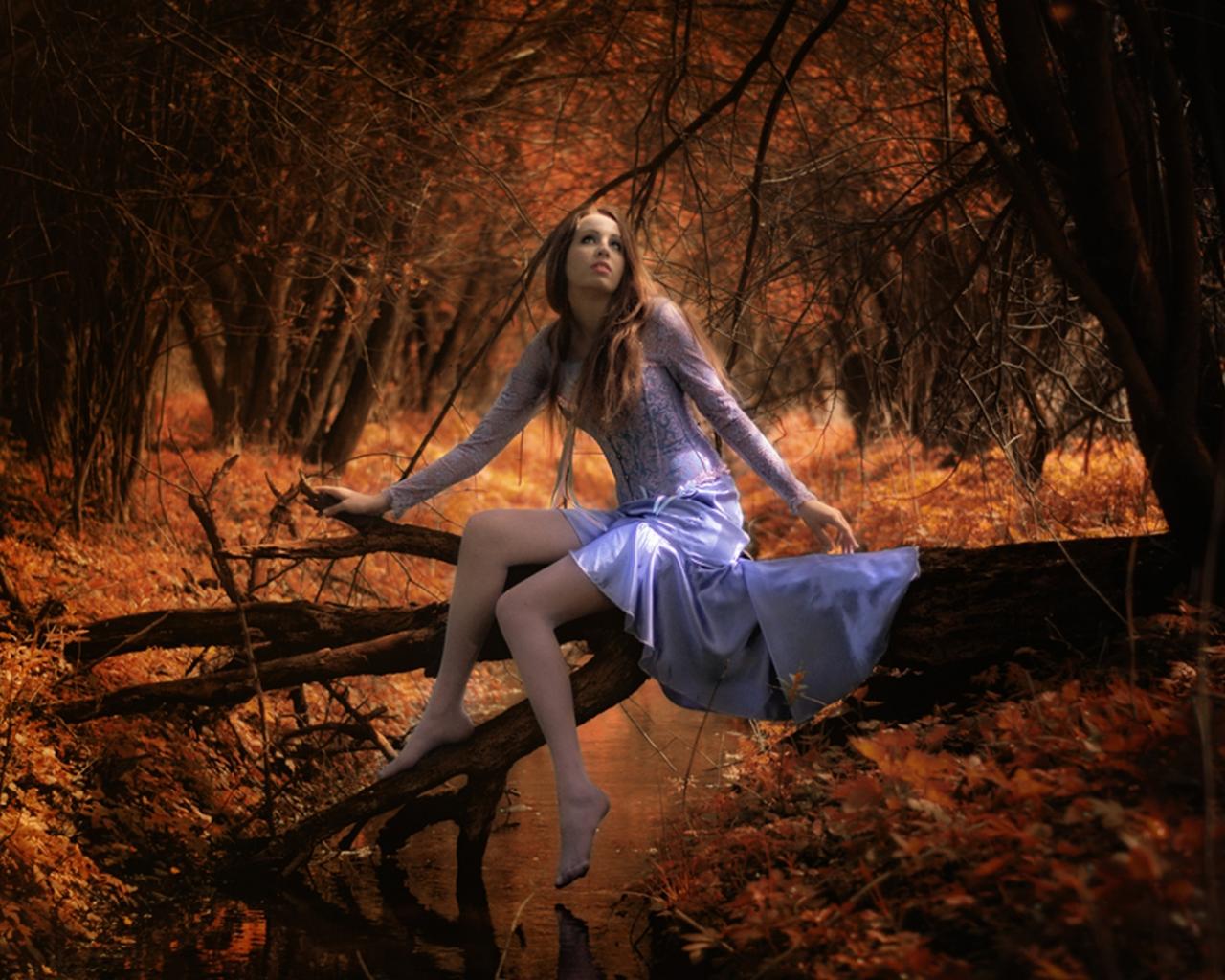 Wallpaper Girl in autumn forest