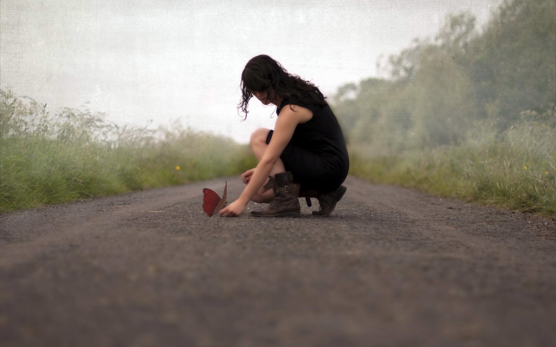 Wallpaper Hands, Road, Grass, Butterfly