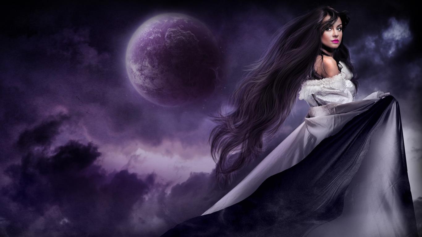 Wallpaper Long hair, Moon, dress