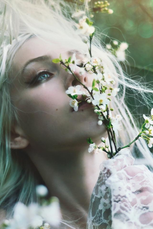 Wallpaper Blue eyes, Beauteful eyes, blooming apple trees