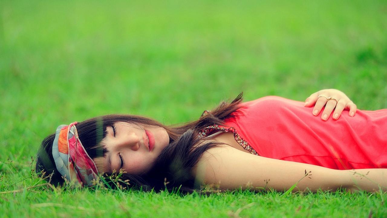 Wallpaper Girl lying on the grass