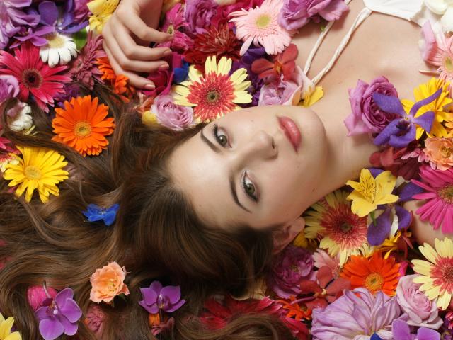 Wallpaper Girl among the flowers