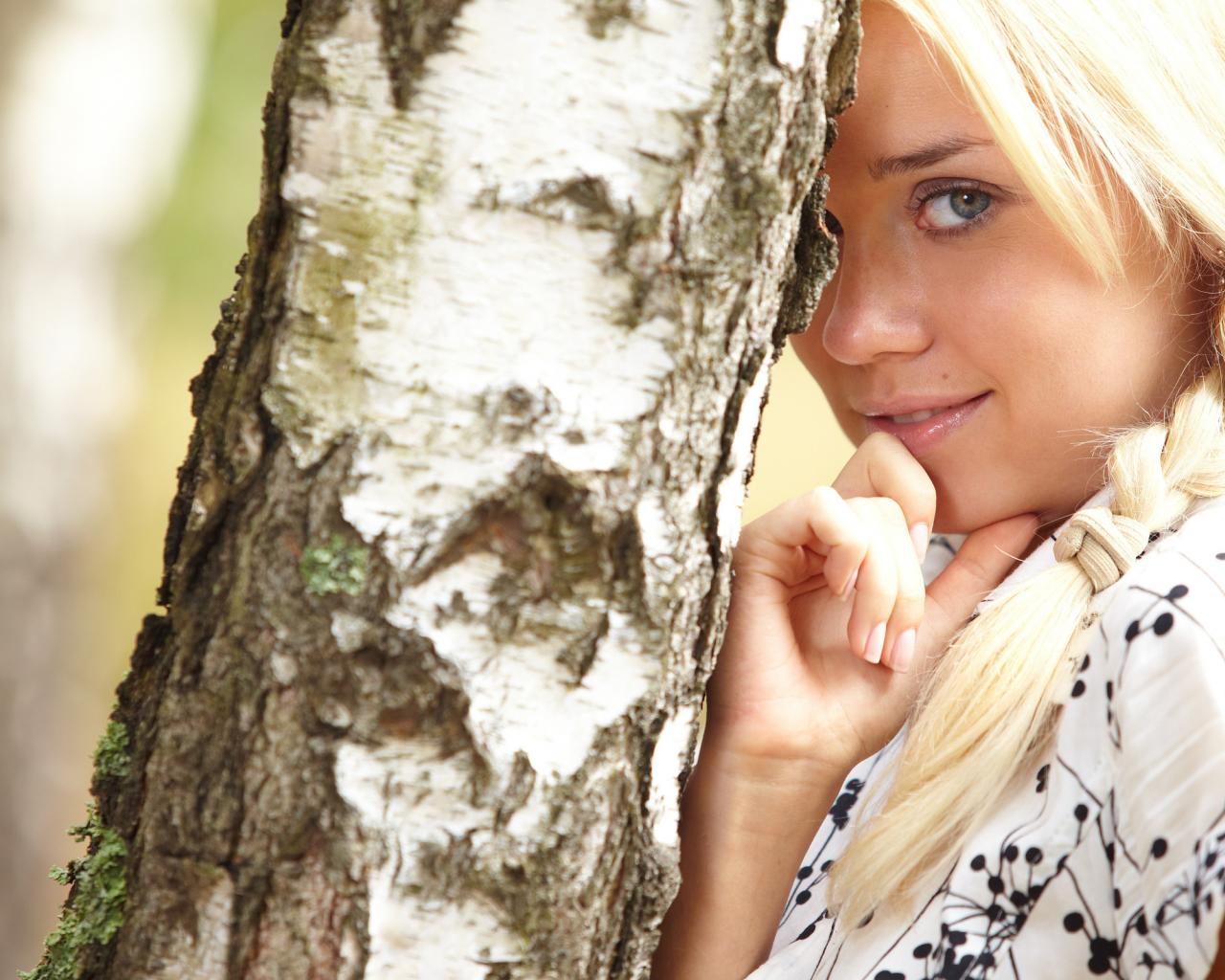 Wallpaper Girl and a birch