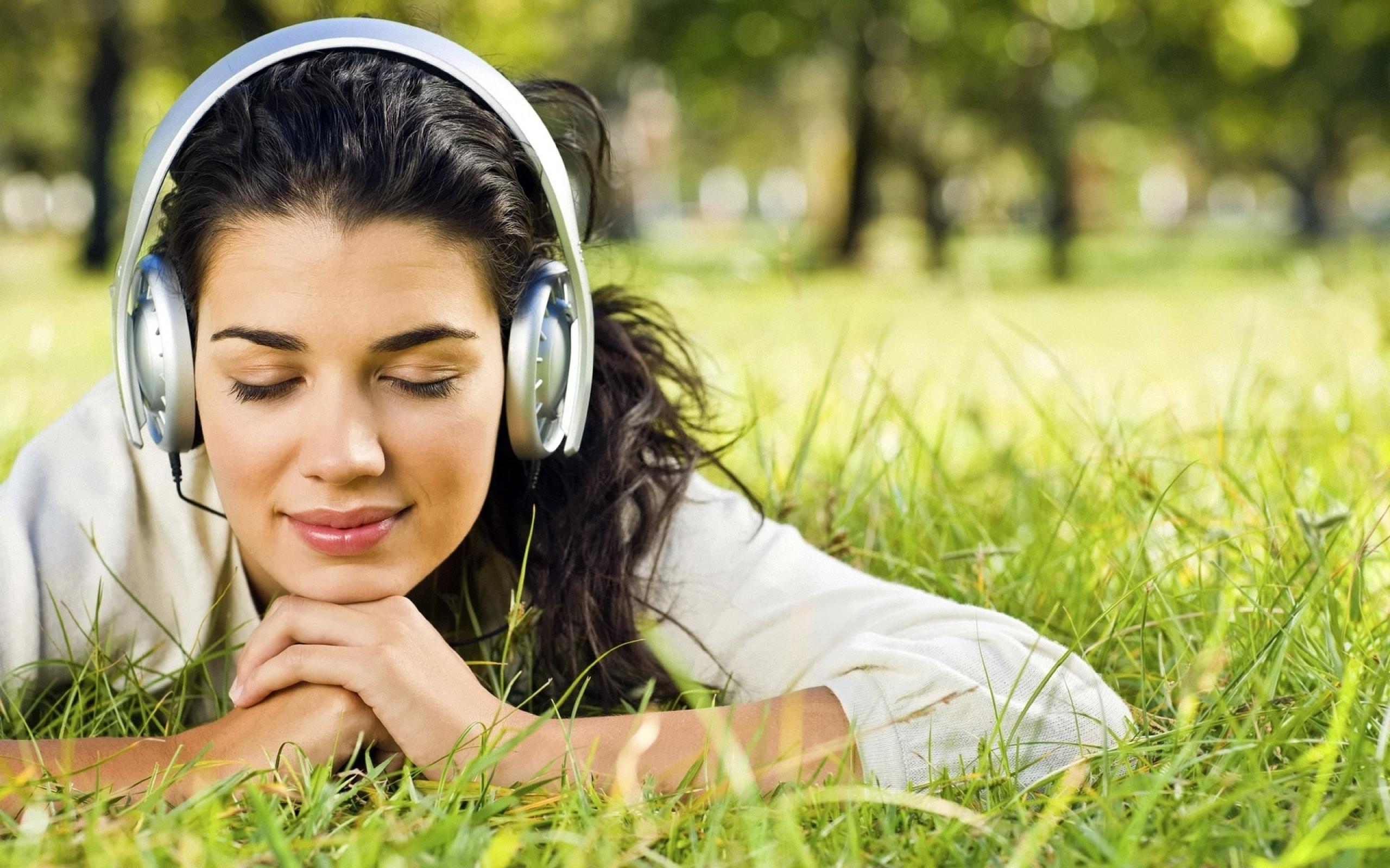 Wallpaper In the headphones on the grass
