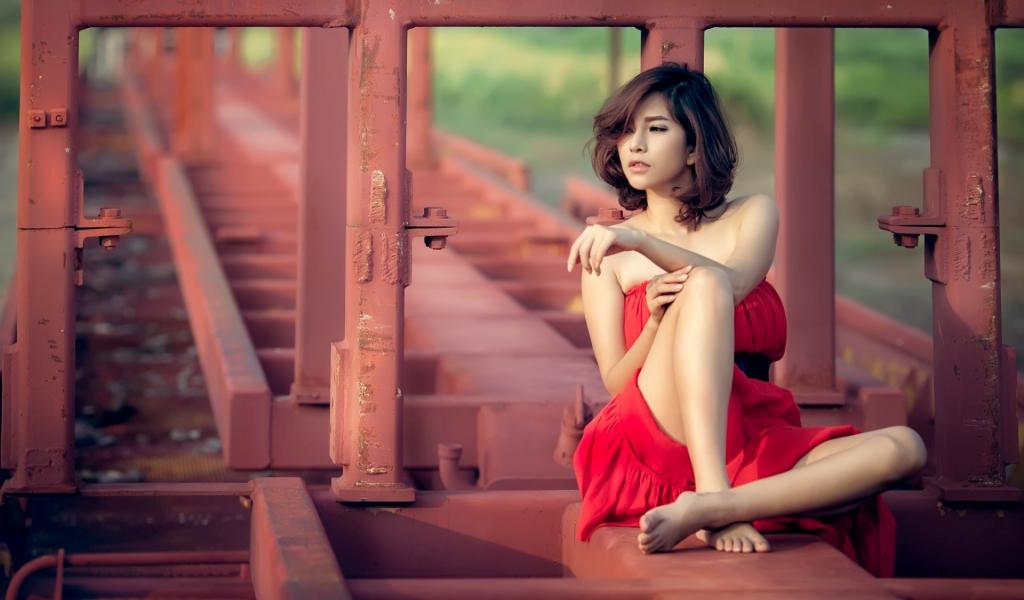 Wallpaper Asian brunette in a red dress