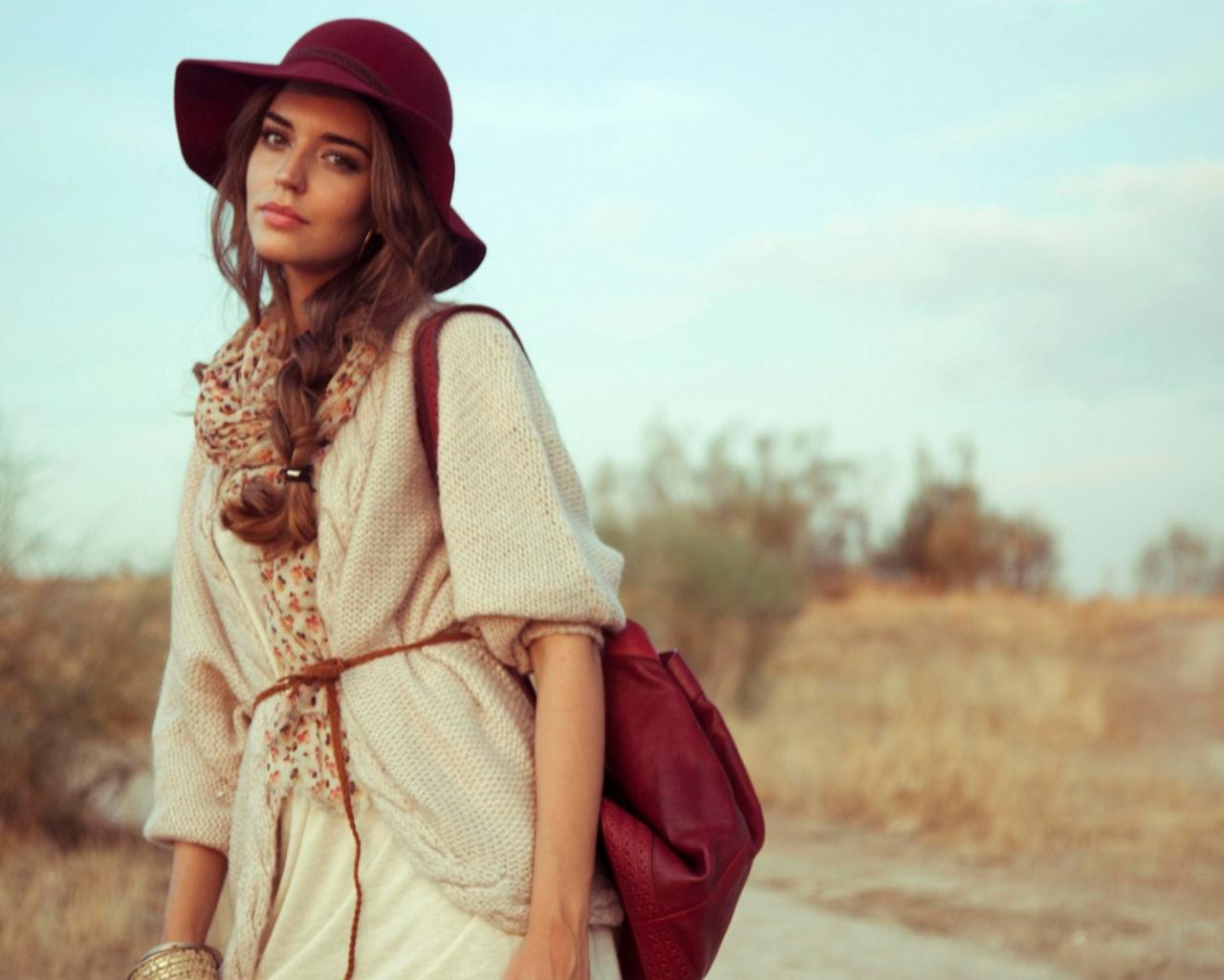 Wallpaper Girl in a red hat