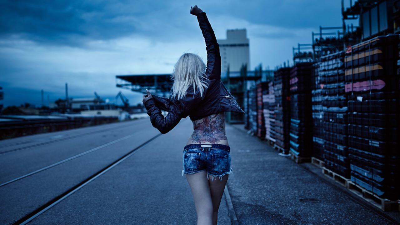 » Wallpaper Blonde walking down the street