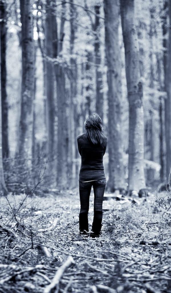 Wallpaper Lonely girl in the woods