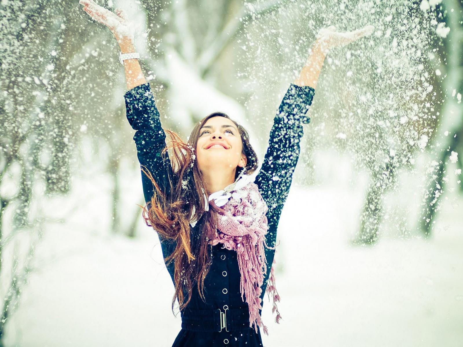 Wallpaper Girl enjoys the snow