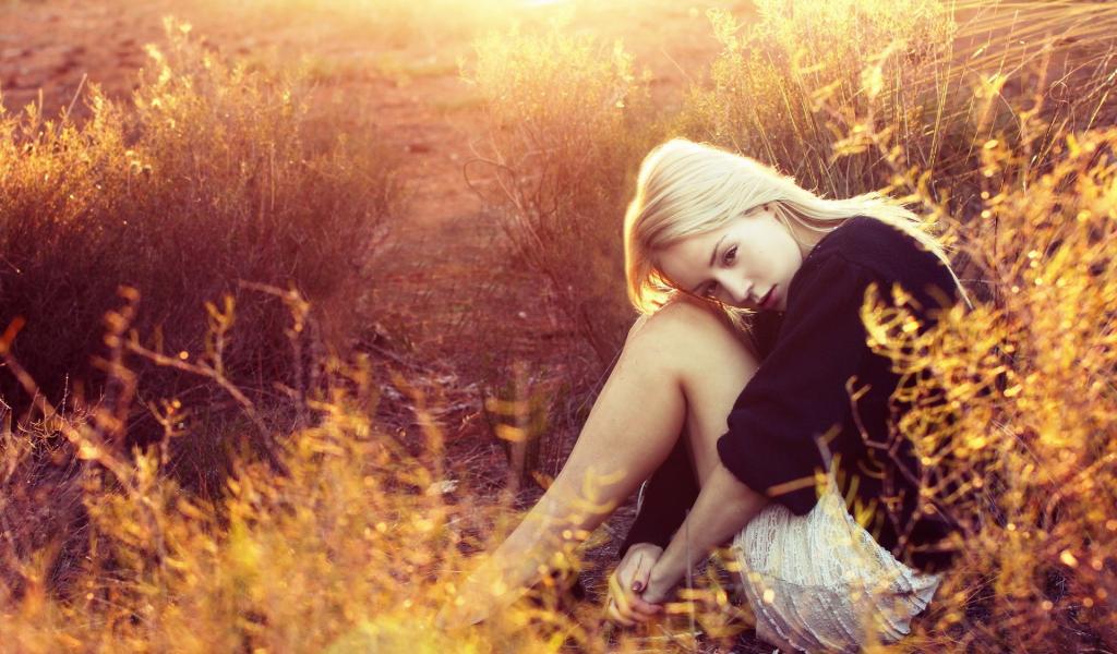 Wallpaper Blonde sitting among bushes