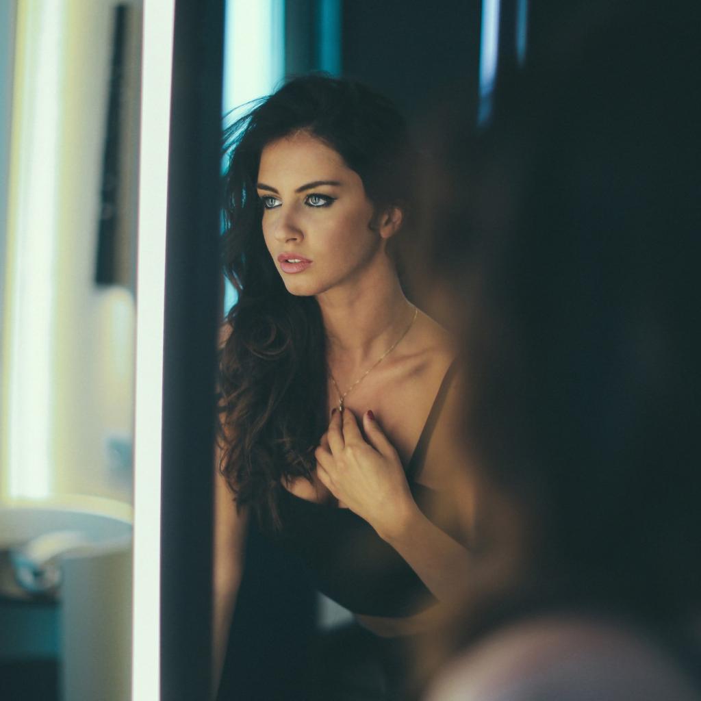 Wallpaper Photography girl looking in the mirror