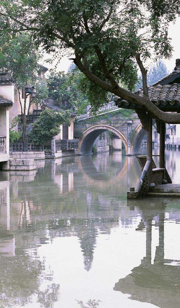Wallpaper The girl looks at a flooded street