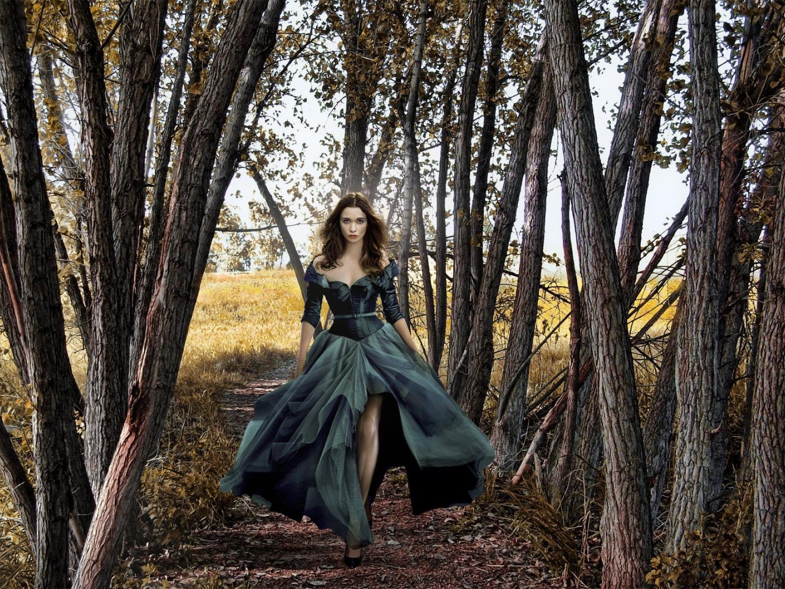 Wallpaper Girl in black dress among the trees